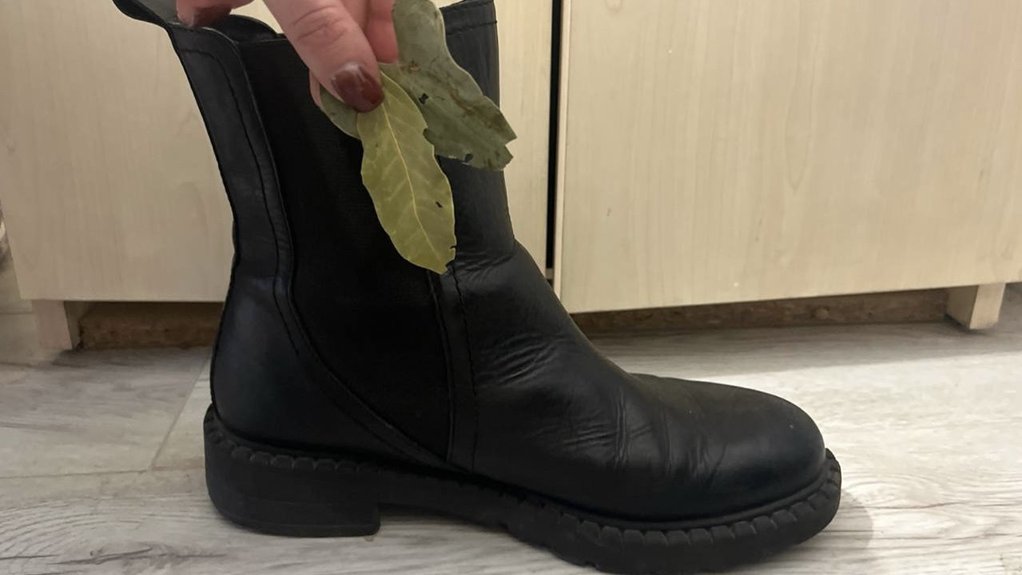 Kiekvieną vakarą į kiekvieną batą įkiškite po vieną ar du džiovintus lauro lapus. Galite juos įdėti po vidpadžiu arba tiesiog į bato priekinę dalį. Jei kvapas stipresnis, galima dėti iki trijų lapelių – vietos pakaks.