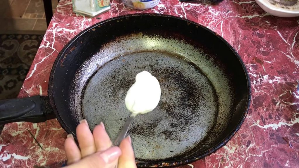 Acto garo vonelė – įpilkite acto į keptuvę, uždenkite ir pašildykite. Garai padės atpalaiduoti net pačius užsispyrusius likučius.