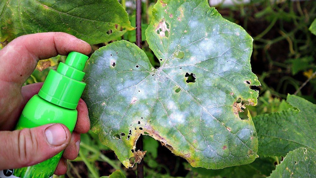 Po savaitės baltos dėmės pradėjo nykti. Po dviejų – lapai vėl žali ir sveiki, agurkai auga toliau lyg nieko nebūtų nutikę.