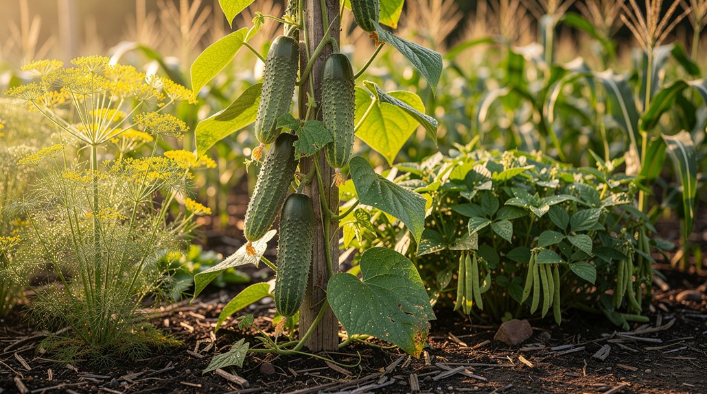 Česnakai, pasodinti prie agurkų pagrindo, atbaido amarus ir riboja kai kurių grybelinių ligų plitimą.