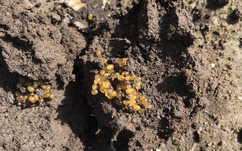 2. Apžiūrėkite aplinkines vietas: patikrinkite kitus dirvos lopus, ypač šiltesnes, drėgnesnes vietas – prie komposto, po lentomis, akmenimis ar plėvele. Gali būti ir daugiau lizdų.