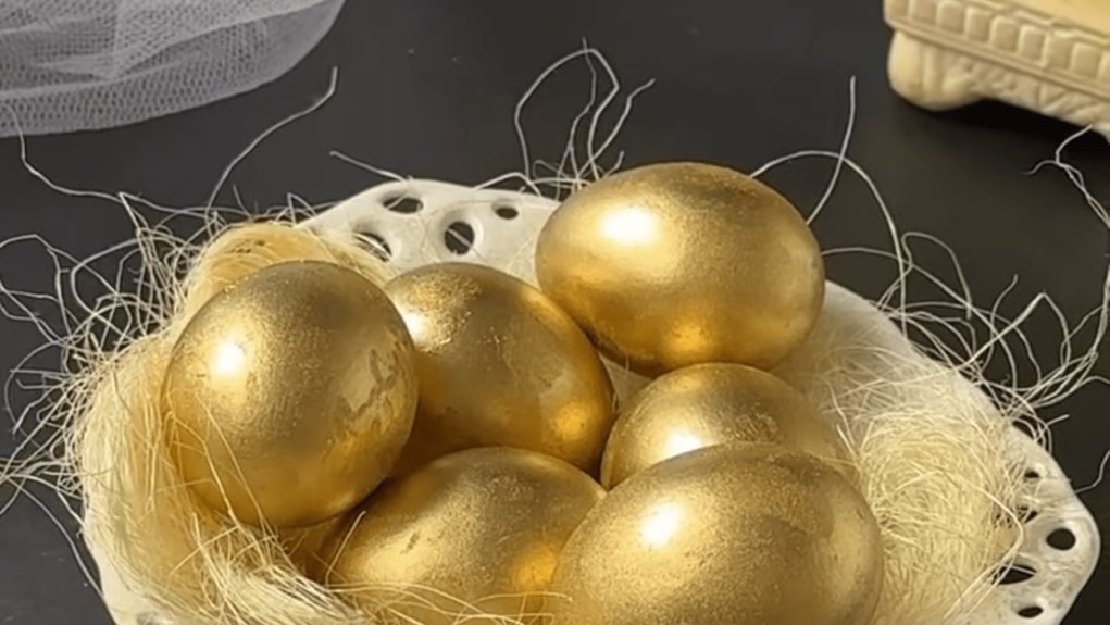 Tada radau kitą būdą – valgomąjį aukso lapelį ir kandurino miltelius. Rezultatas? Kiaušiniai atrodė taip, lyg būtų išėję iš juvelyrinės parduotuvės. Štai kas veikia iš tikrųjų.