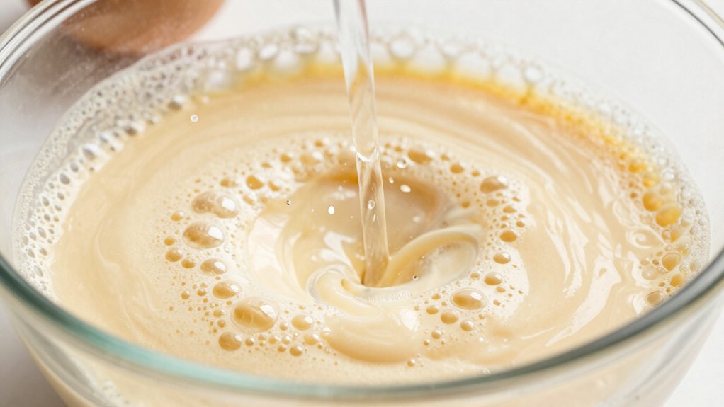 Maišyti – minimaliai. Tik tiek, kad susijungtų. Kiekvienas papildomas maišymas – mažiau burbulų, daugiau glitimo.