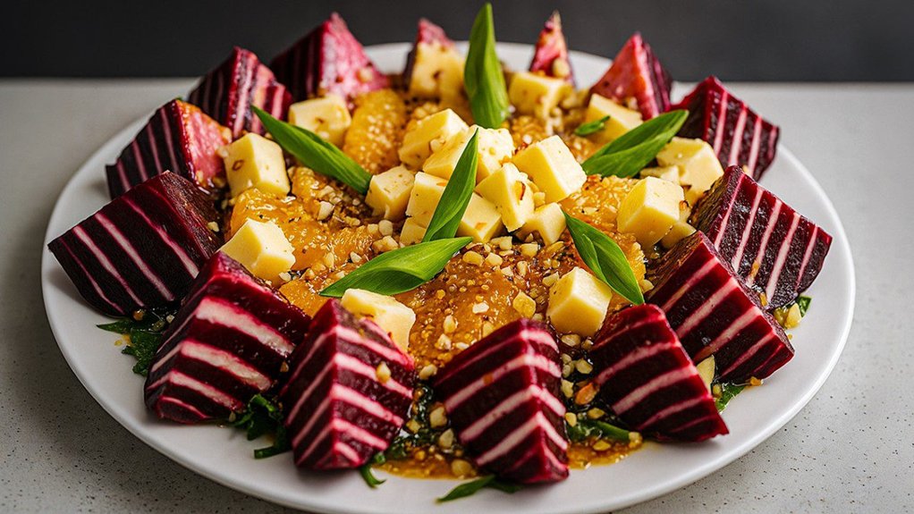 Triukas, kurį atradau per klaidą – burokėlius reikia sluoksniuoti su sūriu ir leisti jiems pastovėti šaltai. Per tuos 30 minučių šaldytuve vyksta stebuklas: sūrio kremas įsigeria į burokėlių poras, skoniai susilieja, o pjaunant gaunasi gražūs, tvarkingi griežinėliai, kurie nesubyra ant lėkštės.