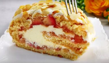 Šis obuolių pyragas-ritinys su karamelizuotais obuoliais ir kremu – tikras atradimas mėgstantiems obuolinius kepinius. Paruošimas užtrunka vos 15…