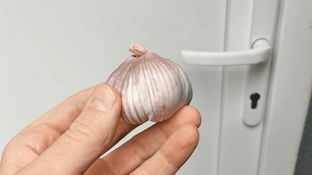 Geriausia tepti iš lauko pusės. Jei durys medinės ir nepadengtos laku – pirmiausia išbandykite nematamoje vietoje. Česnakas gali palikti dėmę ant neapdoroto medžio.
