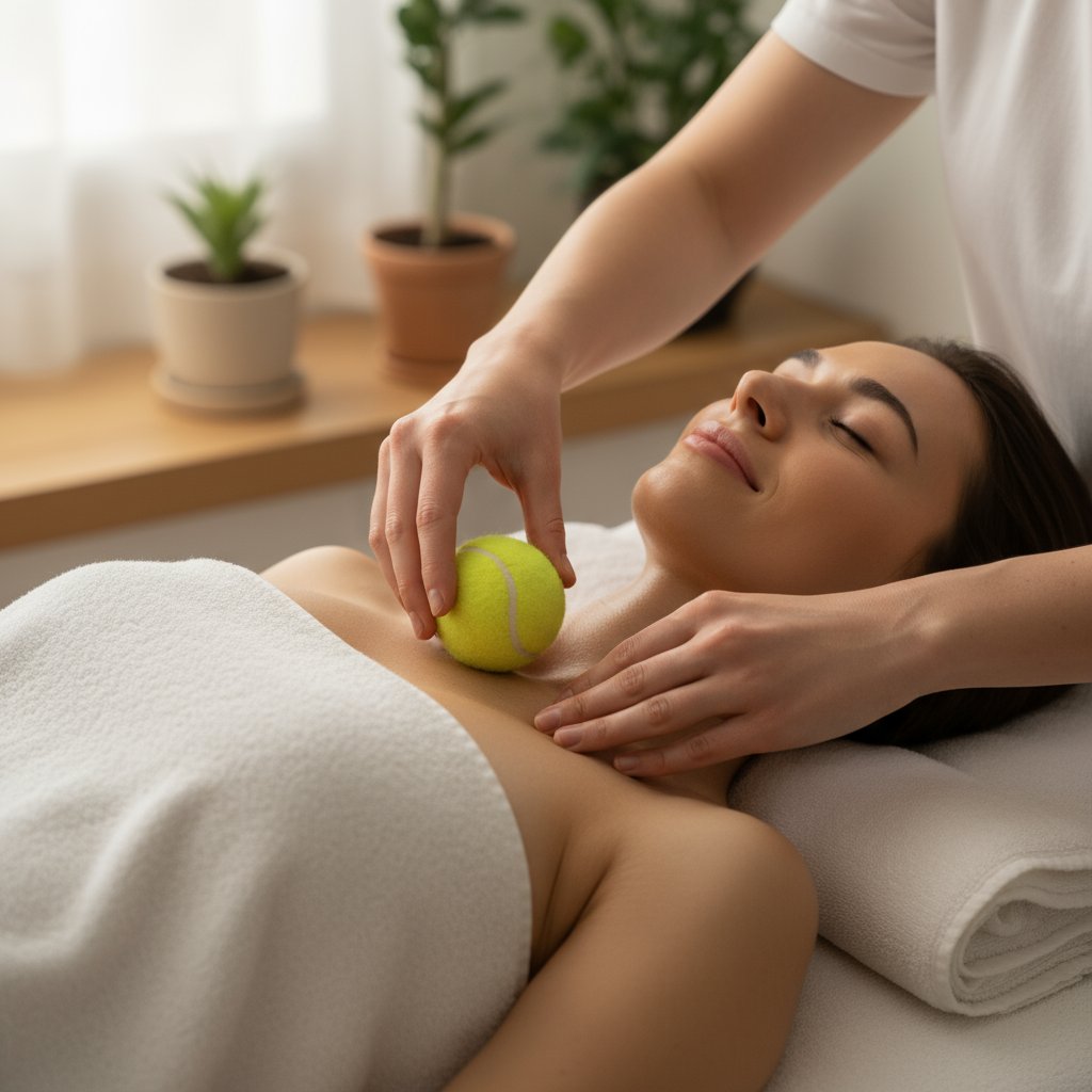 Kas yra dekoltė masažas teniso kamuoliuku?