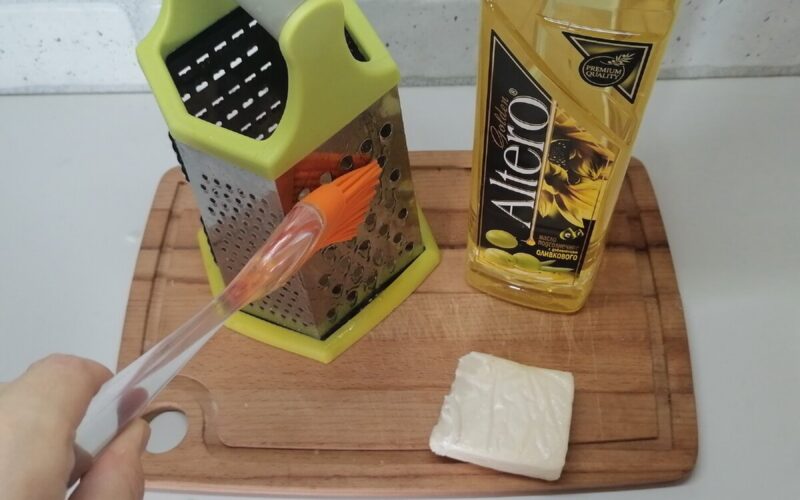 2. Užlašinkite šiek tiek saulėgrąžų arba alyvuogių aliejaus ant tarkos