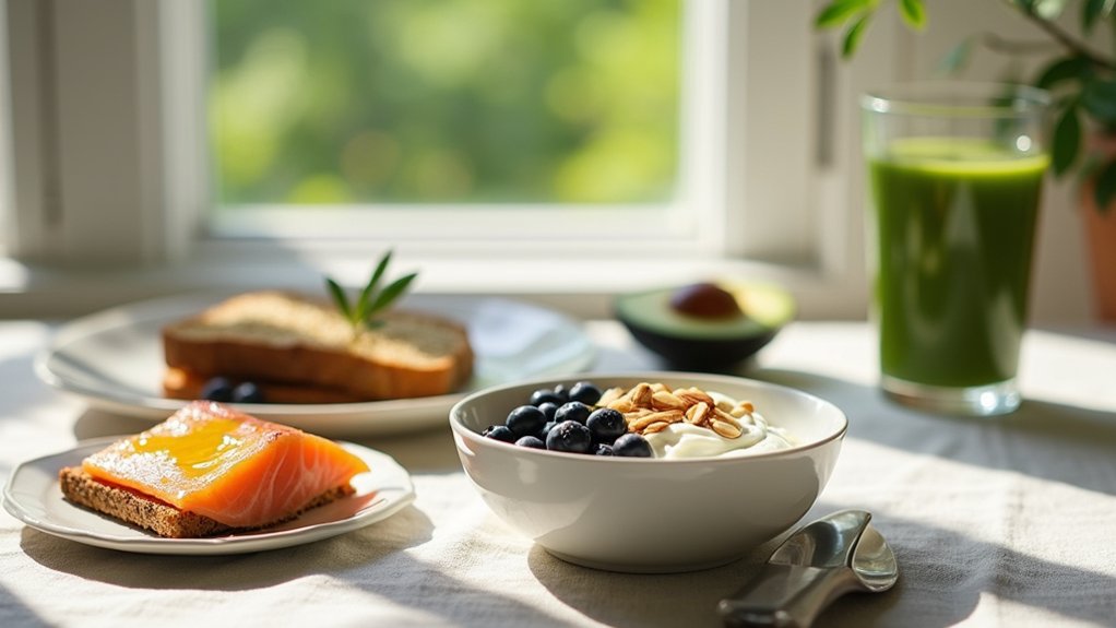 B grupės vitaminai, ypač B12 ir folio rūgštis, padeda energijos gamybai ir pažintinėms funkcijoms, o skaidulinės medžiagos skatina žarnyno sveikatą ir stabilų gliukozės kiekį. Pakankamas hidratavimas ir nedideli sveikų riebalų kiekiai gerina maistinių medžiagų įsisavinimą. Bendruomeninis tonas pripažįsta bendrus poreikius ir praktinius pasirinkimus, skatindamas nuoseklų, įvairų rytinį maistinių medžiagų vartojimą, suderintą su individualiomis medicininėmis rekomendacijomis.