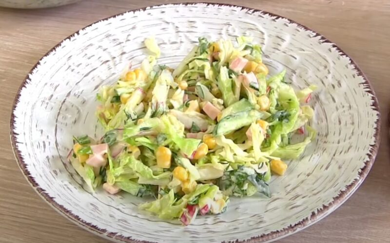 Šių salotų pagrindą sudaro baltieji kopūstai, kurie suteikia malonų traškumą ir tarnauja kaip lengva bazė. Prie kopūstų pridedami ridikėliai, kurie įneša lengvą, aštrų prieskonį, o šviežias agurkas prideda sultingumo. Saldūs konservuoti kukurūzai sušvelnina bendrą įspūdį ir prideda šiek tiek saldumo, taip subalansuodami skonius.