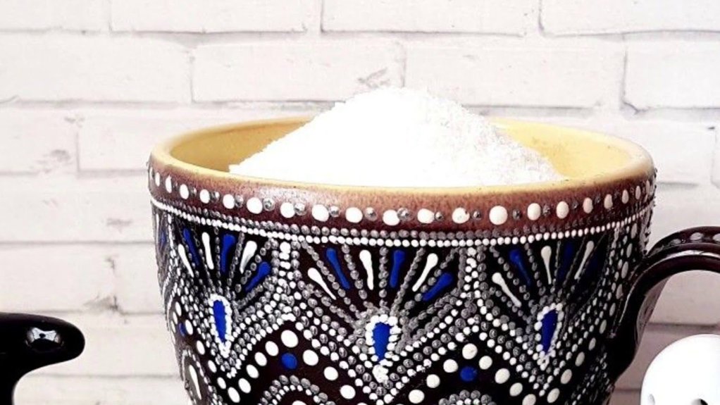 Pasirinkite negilų, platų indą – kuo didesnis paviršius, tuo geriau druska sugeria drėgmę. Tinka keramikinis ar stiklinis dubenėlis. Metalinio geriau vengti – druska gali sukelti koroziją.