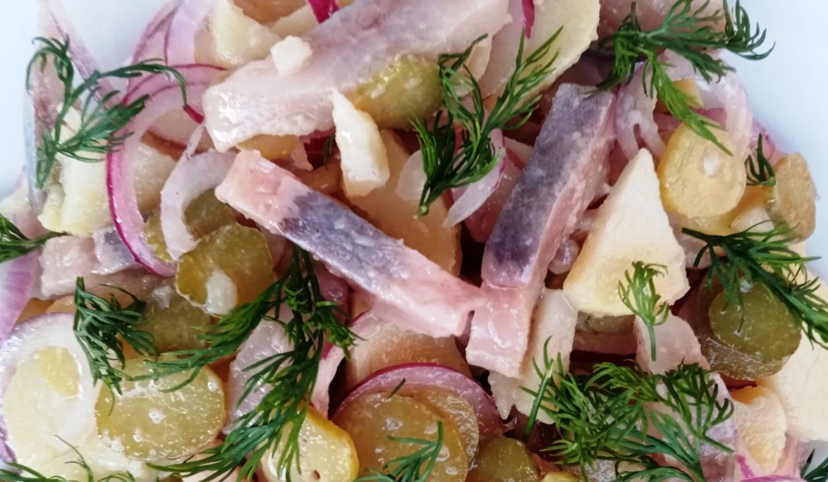 Silkių filė supjaustykite plonais gabalėliais ir įmaišykite į salotas.