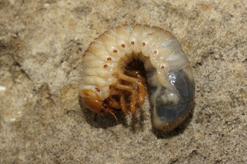Lervos atpažįstamos lengvai: baltos, susilenkusios raide C, rudos galvos, trys poros kojų priekyje. Jei radote – tikrinkite kelias vietas sode, nes populiacija retai pasiskirsto tolygiai.