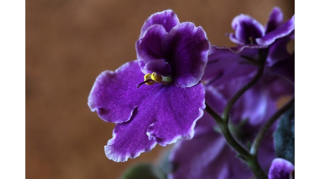 Po dviejų mėnesių sanpaulija atrodė geriau nei bet kada. Kompaktiška rozetė, sodriai žali lapai, keli violetiniai žiedai.