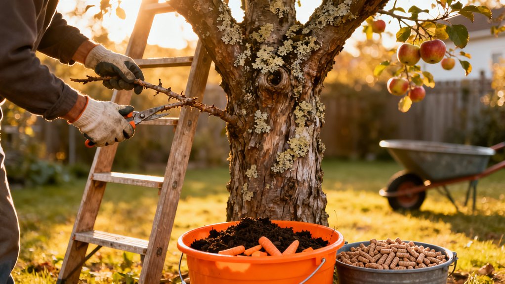 Dabar – svarbiausias dalykas: „morkos”. Po streso medis turi gauti tinkamą mitybą, kad galėtų formuoti ir išauginti vaisius.