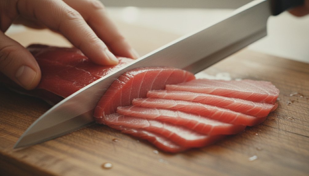 Kaip supjaustyti raudoną žuvį plonais gabalėliais: japonų šefų gyvenimo gudrybė