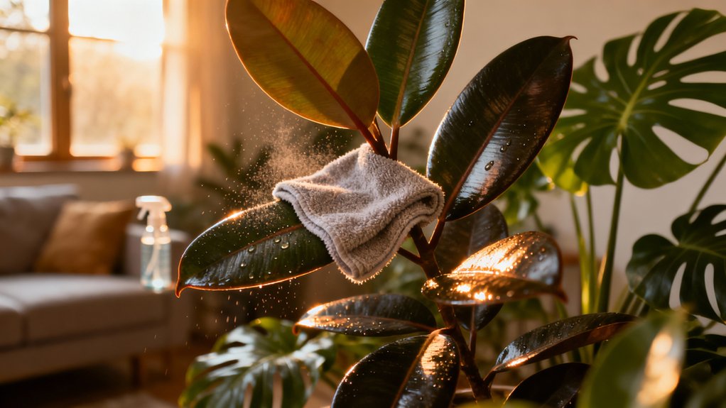 Stebėkite reakciją: Po valymo stebėkite augalą 24-48 valandas. Jei pastebite rudas dėmes ar vytusius lapų galiukus, galbūt valymo metodas per agresyvus.