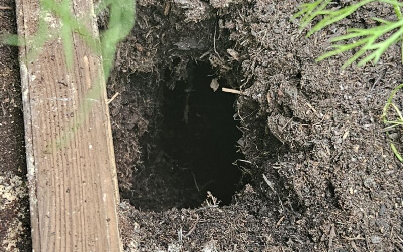 Jeigu pastebėjote staiga atsiradusias dideles, giliai vedančias skylutes ar tunelius savo darže ar šiltnamyje – jūsų daržą greičiausiai „lanko“ nekviestas svečias. Tokie požeminiai urvai, kaip matyti nuotraukoje, dažnai būna ženklas, kad dirvoje įsikūrė rimtesnis kenkėjas, galintis padaryti didelę žalą augalams: išrauti šaknis, išversti daigus, pažeisti vaisius ar net sukelti augalų nykimą. Pabandykime išsiaiškinti, kas tai gali būti ir kaip elgtis toliau.