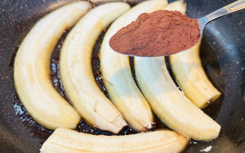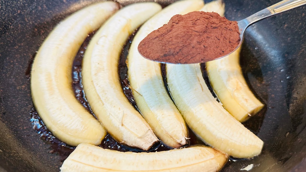 Tai užtrunka vos porą minučių. Bananai turi likti keptuvėje – jų neišimkite.