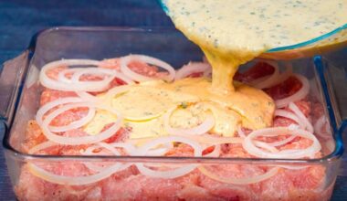 - Patepame kepimo formą augaliniu aliejumi, sudedame ½ dalį tešlos.