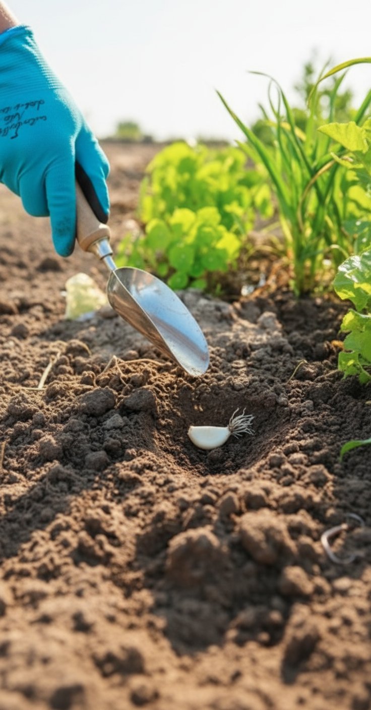 Česnako sodinimo gylis nustato fiziologines ribas, kurios lemia sezono derlių. Ekspertai rekomenduoja apie 4–5 cm pavasarį ir 6–8 cm rudenį, atsižvelgiant į sunkią arba lengvą dirvą. Gylis turi įtakos apsaugai nuo šalčio, drėgmės prieigai ir svogūnėlių dydžiui; per sekli sodinimo vieta kelia šalto ir išdžiūvimo pavojų, per gili – vėluoja sudygimas ir padidėja puvimo tikimybė. Supratus, kodėl šie skaičiai yra tokie, galima atlikti paprastus koregavimus, kurie žymiai pakeis derlių.