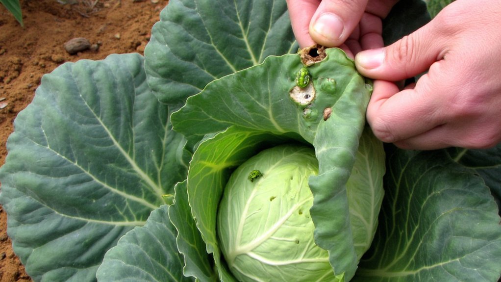 Kopūstų amarai: Žalsvos, mažytės vikšraitės, kurios ėda lapus.