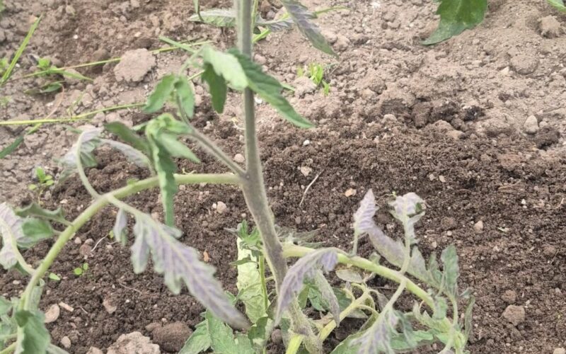 Skaitytoja pasidalijo nuotrauka, kurioje matyti jaunas pomidoras su gelsvu žiedu, bet lapai – keistai pamėlę, kai kurie – jau džiūsta. Dirva atrodo tvarkinga, o augalas – tarsi praradęs jėgas. Kas vyksta?