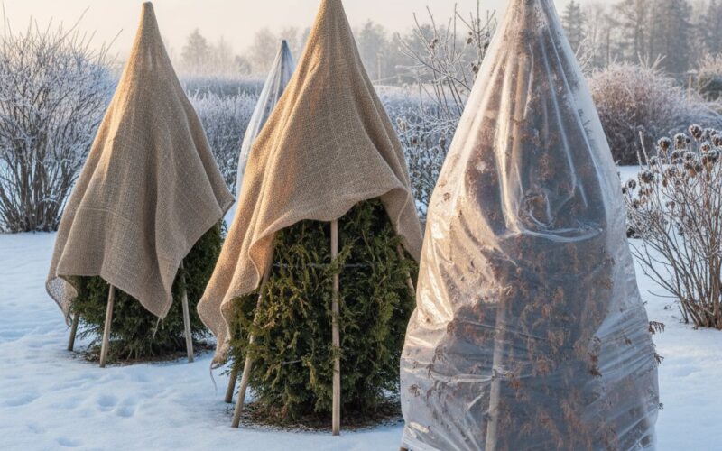 Tujos apvyniojimas žiemai apsaugo jaunas persodintas augalas nuo saulės nudegimų, vėjo išdžiūvimo ir graužikų kramtymo per pirmuosius pažeidžiamus sezonus. Tinkamai apsaugoti galima naudojant kvėpuojančią kanapę arba šešėlinę medžiagą, laisvai uždengiant arba naudojant rėmą, kad būtų galima keistis oru ir išvengti drėgmės susikaupimo. Netinkamas apvyniojimas – sandarus plastikas arba uždaros dangos – sulaiko kondensatą, skatina grybelinį spyglių puvimą ir kambio puvimą ir gali pabloginti pažeidimus. Toliau pateiktose rekomendacijose paaiškinama, kokios medžiagos yra saugios, kada jas naudoti, kokios yra alternatyvos brandžioms augalams ir kaip vykdyti prevencinę priežiūrą.