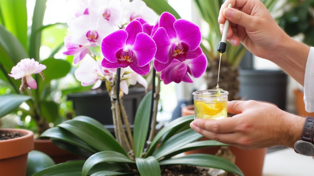 Taikymas: laistykite orchidėjas perkoštu skysčiu kas dvi savaites ir, jei norite, purkškite lapus, kad papildytų įsisavinimą.