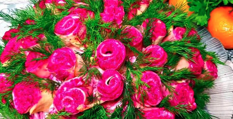Šios salotos – tikras šventinio stalo nugalėtojas. Kai pirmą kartą paruošiau, svečiai suvalgė viską per kelias minutes ir iškart prašė recepto. Dabar be jų neapsieina nė viena šventė. Atrodo įspūdingai, o skonis – dar geresnis.