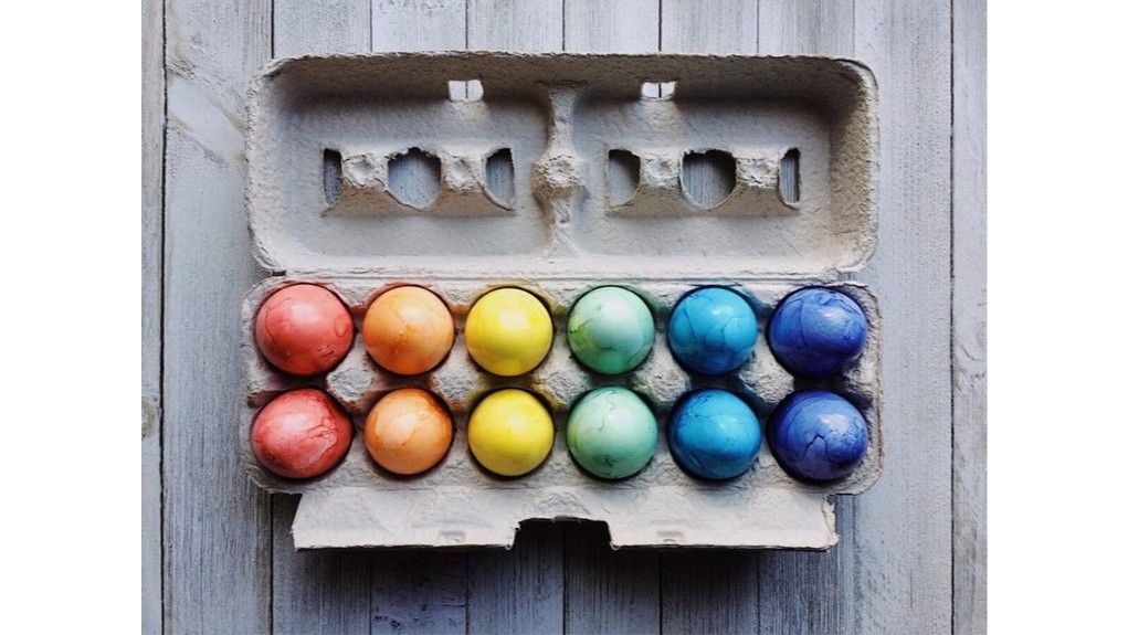 Galima maišyti – pasinaudoti keliais dažais ir sukurti daugiaspalvius kiaušinius.