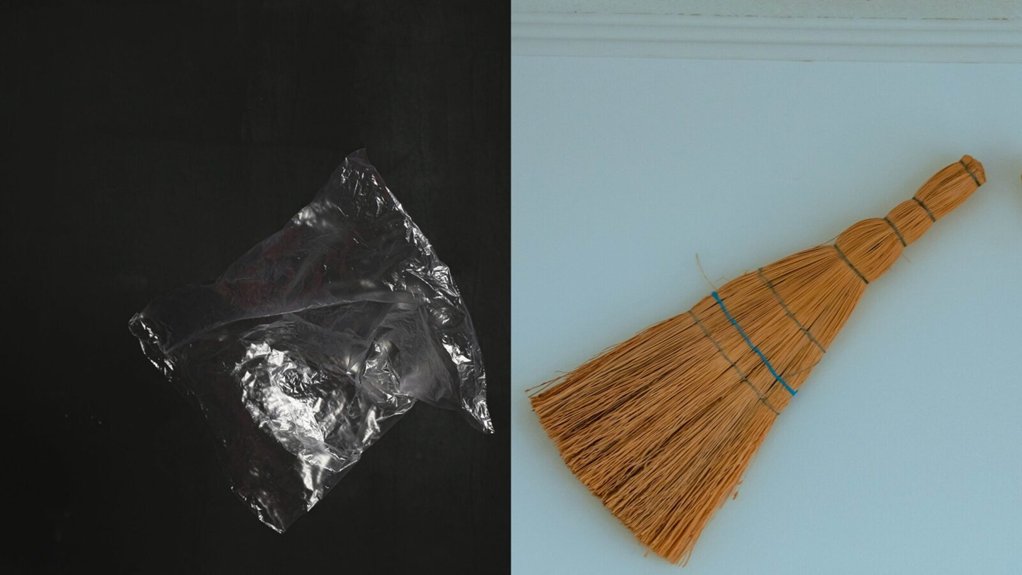 Idėja paprasta: užmaunate plastikinį maišelį ant šluotos galvutės ir pritvirtinate jį. Maišelis tampa vienkartine surinkimo priemone, kuri sulaiko visas dulkes, plaukus ir smulkias šiukšles.