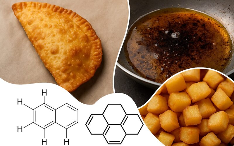 - Policikliniai aromatiniai angliavandeniliai (PAH) – susidaro ypač aukštoje temperatūroje kepant aliejuje
