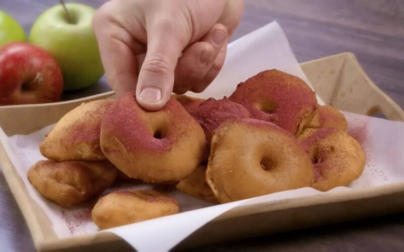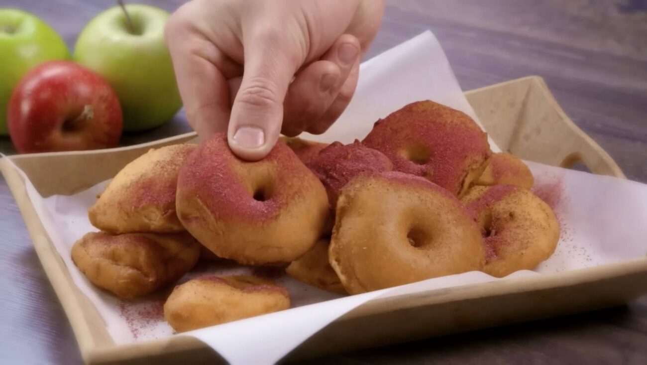 Šis receptas tinka tiems, kas nori nustebinti artimuosius, bet neturi laiko stovėti virtuvėje valandų valandas. Pakaks keturių obuolių, bazinių produktų tešlai ir vieno paprasto triuko, kuris paverčia įprastas spurgas tikru šedevru.