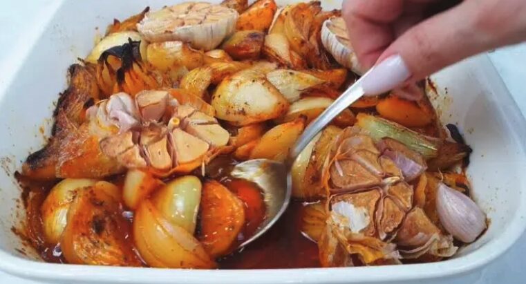 Keptas česnakas, kurį rasite tarp svogūnų, taip pat tinka valgyti – jį galima išspausti iš kevalo ir užtepti ant duonos. Po kepimo jis tampa kreminis ir švelnus, visiškai be aštrumo.