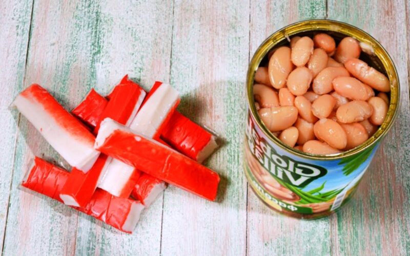 Kaip paruošti krabų salotas su pupelėmis