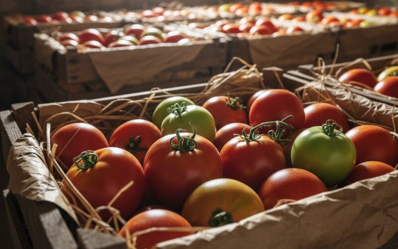 Tvirti, vidutinio dydžio, mėsingi pomidorai skiriami ilgalaikiam laikymui dėžėse; žalesni vaisiai grupuojami atskirai, kad lėčiau nokintų. Dėžės, jei įmanoma, užpildomos vienu sluoksniu, vaisiai nesiliečia; kai vietos yra mažai, naudojami popieriniai įvyniojimai. Paklotai sugeria drėgmę ir apsaugo kontaktinius taškus. Dokumentacijos žymėse nurodyta data ir partija, todėl galima atlikti reguliarias patikras ir greitai pašalinti bet kokius gedimus.
