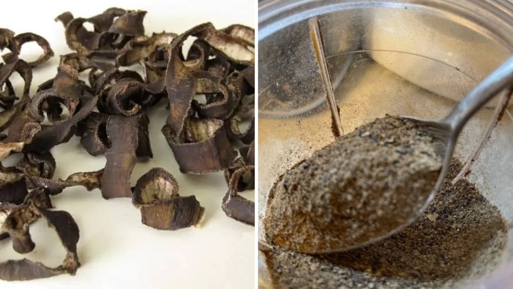 Džiovinu ant ventiliuojamo paviršiaus – dažniausiai ant kartoninės dėžės, padėtos šalia radiatoriaus arba gerai vėdinamoje patalpoje. Svarbu, kad oras cirkuliuotų iš visų pusių. Per kelias dienas žievelės tampa traškios, rudos, visiškai sausos.
