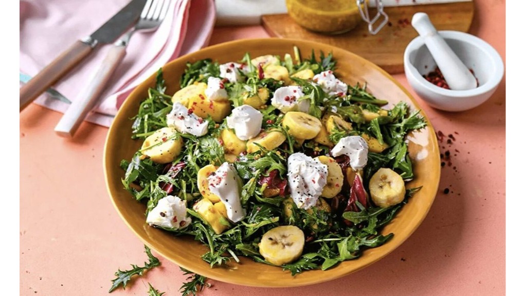 Visa esmė — kontraste. Švelnus, kremiškas bananas susitinka su pikantiška plėšyta vištiena. Traškūs riešutai suteikia gilumo, o lengvas jogurto ir majonezo padažas sujungia viską į harmoningą visumą. Nepaisant neįprasto derinio, skonis primena kažką pažįstamo — tarsi salotų versija tų azijietiškų patiekalų, kur vaisiai drąsiai maišomi su mėsa.