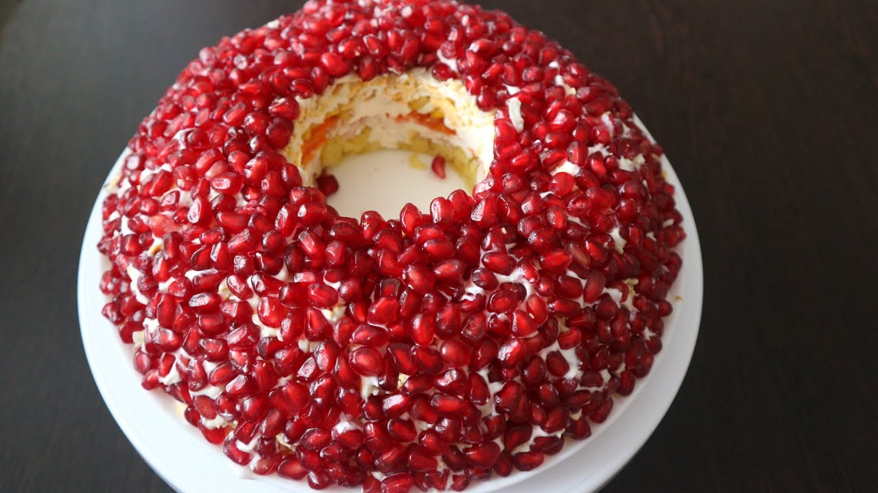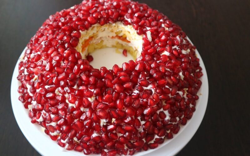 Šių salotų žavesys – ne tik skonis, bet ir pateikimas. Ant plokščios lėkštės suformuokite arkliuko siluetą arba tiesiog tvarkingą kalvelę. Papuoškite granatų sėklomis, kukurūzais ir šviežiais žalumynais.