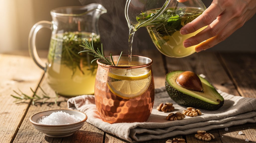 Rehidratacija vyksta palaipsniui – vanduo, vaistažolių arbatos. Prioritetas teikiamas poilsiui ir miegui, nes būtent nakties metu kepenis intensyviausiai atsinaujina.