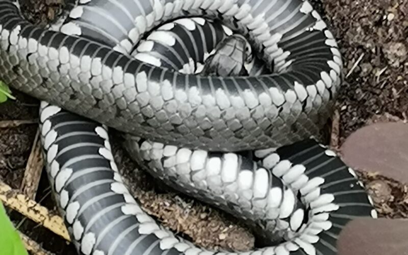 Juodai pilkas kūnas, balti segmentai ir blizgus paviršius daugeliui sukėlė vieną klausimą: „Ar tai angis?“ Tačiau patyrę gamtininkai greitai atpažino: tai paprastasis žaltys, tik nufotografuotas iš netikėto kampo – nuo pilvo pusės, todėl atrodo kiek neįprastai.