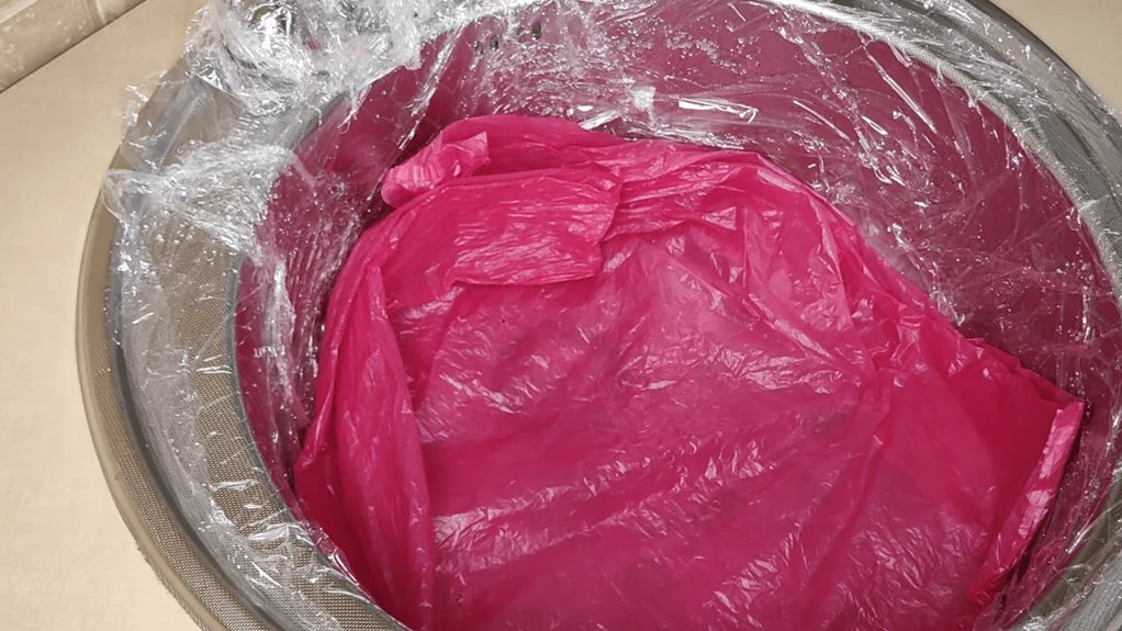 Tada sandariai uždenkite apdorotą paviršių plastikine plėvele. Prispausti kraštus, kad drėgmė neišgaruotų – būtent drėgmė palaiko rūgštingumą ir pagreitina reakciją.