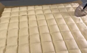 Ant viršaus prispauskite orkaitės groteles — jos suformuos gražų kvadratėlių raštą.