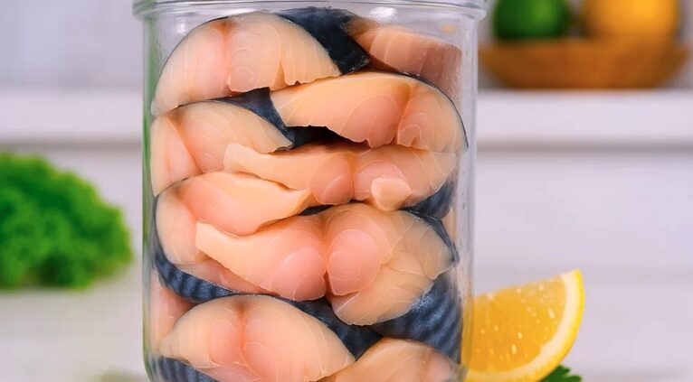 Padėkite į šaldytuvą mažiausiai 24 valandoms. Kartais galite apversti stiklainį, kad marinatas tolygiai pasiskirstytų ir žuvis vienodai įsigertų.