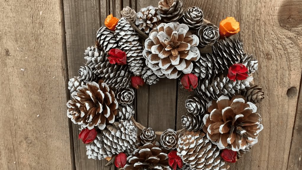Rustikaliam stiliui palikite kankorėžius natūralius arba tik lengvai patamsinkite. Naudokite džiuto virveles, cinamono lazdeles, džiovintus apelsinų griežinėlius.