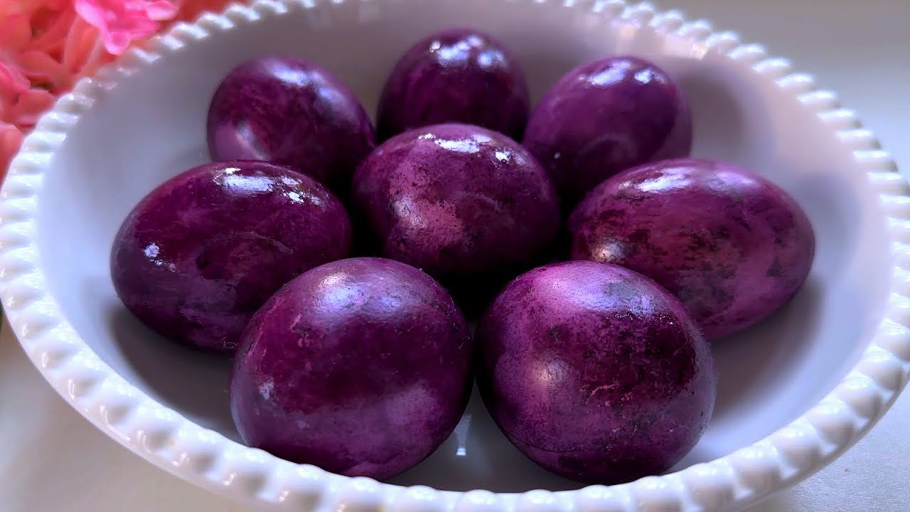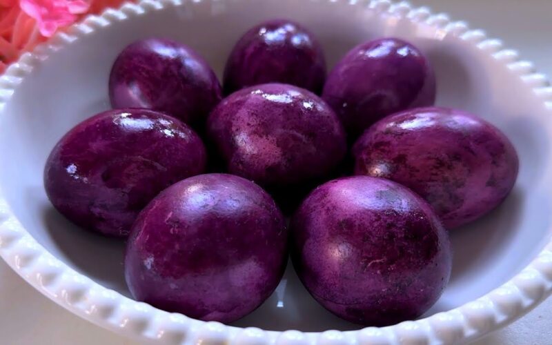 Palikau kiaušinius nakčiai. Ryte ištraukiau – nustebau. Tikrai gili violetinė, tikrai graži.