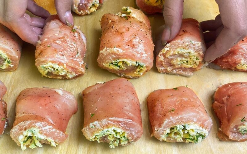 Gaunami sultingi vištienos ir sūrio suktinukai su kvapniu, švelniai saldžiu daržovių padažu.
