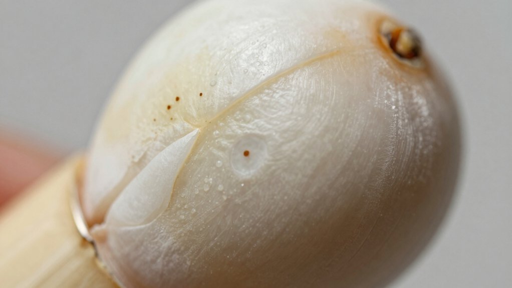 Lupenų spalva turi būti balta arba šviesiai violetinė, be rudų dėmių. Pelėsio ar minkštų vietų – jokių. Daigeliai viršuje – blogas ženklas, reiškia ilgą sandėliavimą.