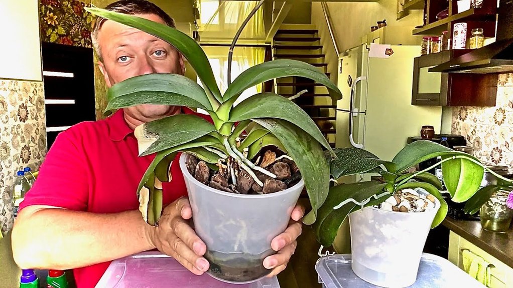 Jo orchidėja atrodė kaip iš parodos. Tamsūs, blizgantys lapai, trys žiedų kotos vienu metu, o kai pakėlė vazoną – šaknys buvo tokios galingos, kad plastmasė vos laikėsi.